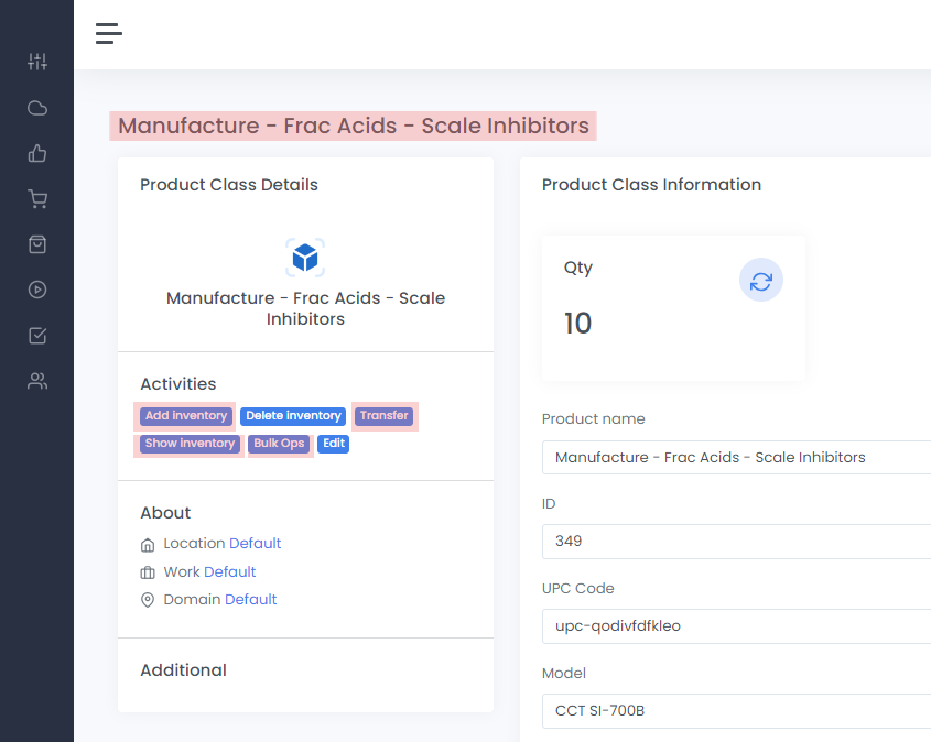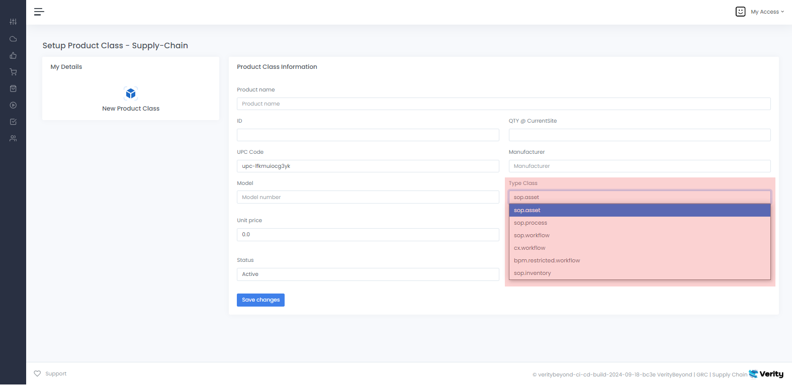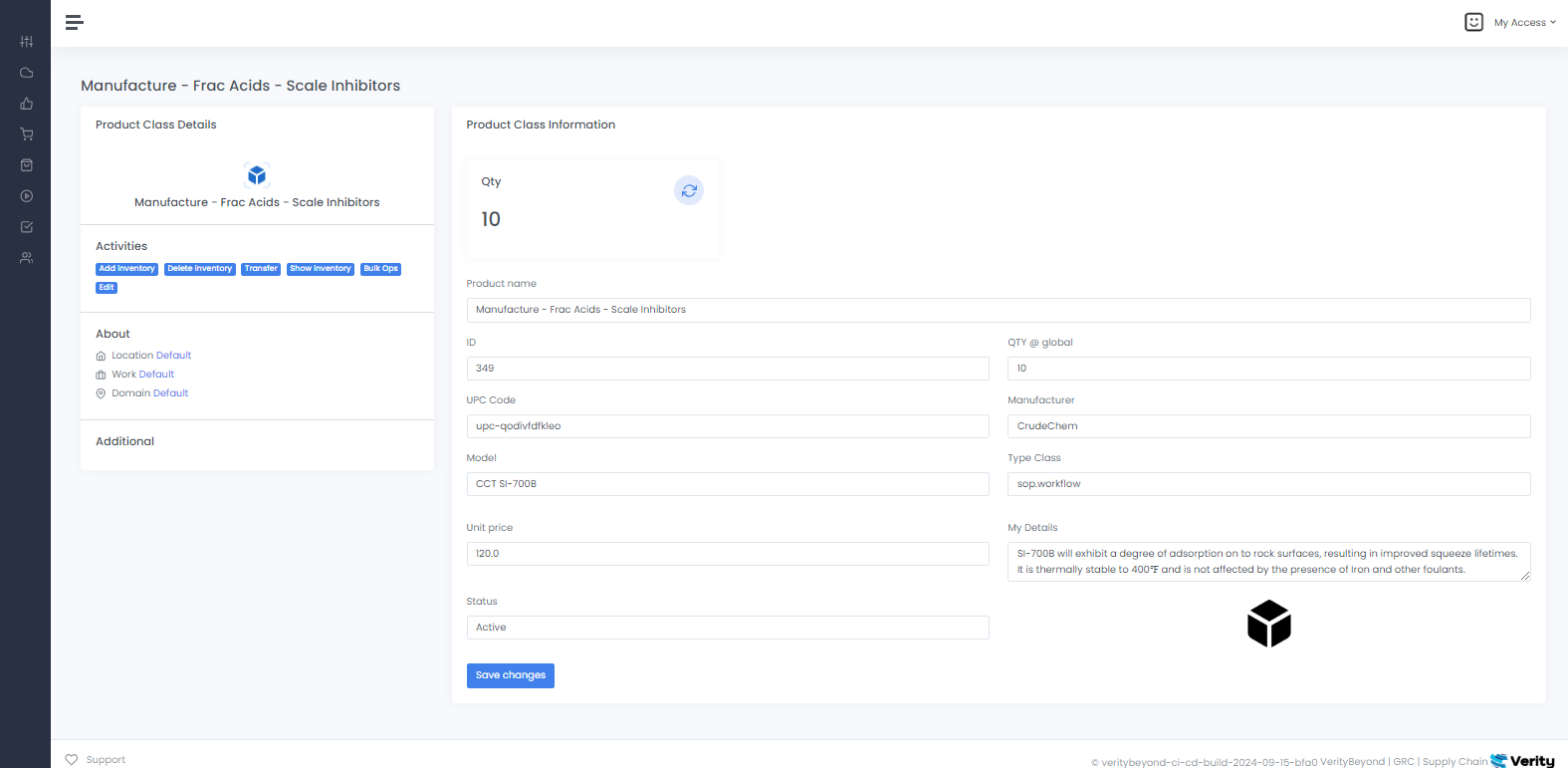 The products view focuses on supply chain inventory management, allowing us to create product classes or