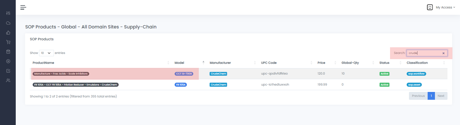 This section describes products or services available within the system. These products serve essential roles within the supply chain, representing tangible goods or templates for services and SOP policies. Users can easily manage and monitor product details, ensuring efficient inventory management and service delivery within their organization.