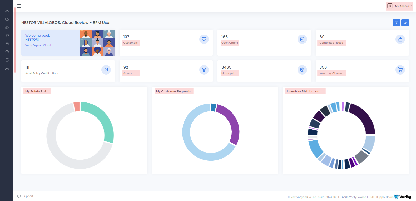 VerityBeyond BPM - GRC Main Dashboard - Request general workflow